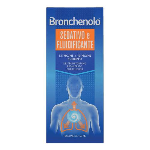 Bronchenolo Sedativo e Fluidificante deve essere utilizzato solo dopoattenta valutazione medica in caso di: tosse cronica o persistente, dicui vanno indagate le cause che richiedono un trattamento eziologicospecifico; grave insufficienza epatica e renale. Nel caso in cui la tosse dovesse persistere, peggiorare o essere accompagnata da febbre alta, eruzione cutanea o cefalea persistente si raccomanda di rivalutareil quadro clinico. Il destrometorfano puo' dare assuefazione. A seguito di un uso prolungato, i pazienti possono sviluppare tolleranza al medicinale, cosi' come dipendenza mentale e fisica (vedere paragrafo 4.8). Sono stati riportati casi di abuso e dipendenza di destrometorfano.Si raccomanda di prestare particolare attenzione con adolescenti e giovani adulti e bambini, nonche' con pazienti con una storia di alcolismo, di abuso di farmaci o sostanze psicoattive. I pazienti con tendenza all'abuso o alla dipendenza devono assumere Bronchenolo Sedativo e Fluidificante per brevi periodi ed essere attentamente monitorati. L'assunzione di alcol durante il trattamento e' da sconsigliare. Il destrometorfano e' metabolizzato dal citocromo epatico P450 2D6 (vedere paragrafo 5.2). L'attivita' di questo enzima e' geneticamente determinata.Circa il 10% della popolazione metabolizza lentamente il CYP2D6. In metabolizzatori lenti e pazienti con uso concomitante di inibitori delCYP2D6 possono manifestarsi effetti esagerati e/o prolungati del destrometorfano. E' necessario pertanto prestare attenzione in pazienti metabolizzatori lenti del CYP2D6 o che utilizzano inibitori del CYP2D6 (vedere paragrafo 4.5). Rischi derivanti dall'uso concomitante di medicinali sedativi come le benzodiazepine o farmaci correlati: l'uso concomitante di Bronchenolo Sedativo e Fluidificante e medicinali ad azionesedativa come le benzodiazepine, o farmaci correlati, puo' causare sedazione, depressione respiratoria, come e morte. A causa di questi rischi, la prescrizione concomitante con medicinali ad azione sedativa deve essere limitata ai pazienti per i quali non sono possibili trattamenti alternativi. Se viene presa la decisione di prescrivere BronchenoloSedativo e Fluidificante insieme a medicinali ad azione sedativa, deve essere usata la dose minima efficace e la durata del trattamento deve essere la piu' breve possibile (vedere anche le raccomandazioni generali sulla dose al paragrafo 4.2). I pazienti devono essere seguiti attentamente per riconoscere segni e sintomi di depressione respiratoriae sedazione. A tale riguardo, e' fortemente raccomandato di informarei pazienti e chi si prenda cura di loro (ove applicabile) in modo chesiano consapevoli di questi sintomi (vedere paragrafo 4.5). Sindromeda serotonina: effetti serotoninergici, incluso lo sviluppo di una sindrome da serotonina potenzialmente letale, sono stati segnalati per destrometorfano con somministrazione concomitante di agenti serotoninergici, come gli inibitori selettivi della ricaptazione della serotonina(selective serotonin reuptake inhibitors, SSRI), farmaci che alteranoil metabolismo della serotonina (tra cui gli inibitori della monoammino-ossidasi [monoamine oxidase inhibitors, MAOI]) e gli inibitori del CYP2D6. La sindrome da serotonina puo' includere variazioni dello statomentale, instabilita' autonomica, anomalie neuromuscolari e/o sintomigastrointestinali. Qualora si sospetti una sindrome da serotonina, iltrattamento con Bronchenolo Sedativo e Fluidificante dovra' essere interrotto (vedere paragrafi 4.4 e 4.8). Popolazione pediatrica: nei bambini possono verificarsi eventi avversi gravi, inclusi disturbi neurologici. A tale riguardo, si raccomanda fortemente di informare chi si prende cura di loro (ove applicabile) in modo che siano consapevoli deipossibili sintomi di depressione respiratoria e sedazione. Informazioni sugli eccipienti con effetti noti. Bronchenolo Sedativo e Fluidificante sciroppo contiene, saccarosio liquido: contiene 7,35 g di saccarosio (zucchero) per una dose di 10 ml. Da tenere in considerazione in pazienti con diabete mellito. I pazienti affetti da rari problemi ereditari di intolleranza al fruttosio, da malassorbimento di glucosio-galattosio, o da insufficienza di sucrasi isomaltasi, non devono assumerequesto medicinale; alcol etilico: questo medicinale contiene 480 mg dialcol (etanolo) in ogni dose di 10 ml. La quantita' in 10 ml di questo medicinale e' equivalente a 12 ml di birra e 5 ml di vino. Puo' essere dannoso per gli alcolisti. Da tenere in considerazione nelle donnein gravidanza o in allattamento, nei bambini e nei gruppi ad alto rischio come le persone affette da patologie epatiche o epilessia. Una dose di 10ml di questo medicinale somministrato ad un bambino di eta' pari a 12 anni e peso inferiore o uguale a 32kg comporterebbe un'esposizione di 15 mg che puo' causare un aumento della concentrazione di alcool nel sangue (BAC) di circa 2,5 mg/100ml. La co-somministrazione con medicinali contenenti per es. glicole propilenico o etanolo possono portare all'accumulo di etanolo e indurre effetti avversi, in particolarenei bambini piccoli con attivita' metabolica bassa o immatura. Propile e metile para-idrossibenzoati, che possono causare reazioni allergiche (anche ritardate); sodio: questo medicinale contiene meno di 1 mmole di sodio (23 mg), cioe' essenzialmente senza sodio. Bronchenolo Sedativo e Fluidificante pastiglie gusto menta contiene, saccarosio: contiene 2,08 g di saccarosio per dose. I pazienti affetti da rari problemiereditari di intolleranza al fruttosio, da malassorbimento di glucosio-galattosio, o da insufficienza di sucrasi isomaltasi, non devono assumere questo medicinale; aspartame: questo medicinale contiene 23 mg di aspartame per compressa. Aspartame e' una fonte di fenilalanina. Puo' esserle dannoso se e' affetto da fenilchetonuria, una rara malattiagenetica che causa l'accumulo di fenilalanina perche' il corpo non riesce a smaltirla correttamente.